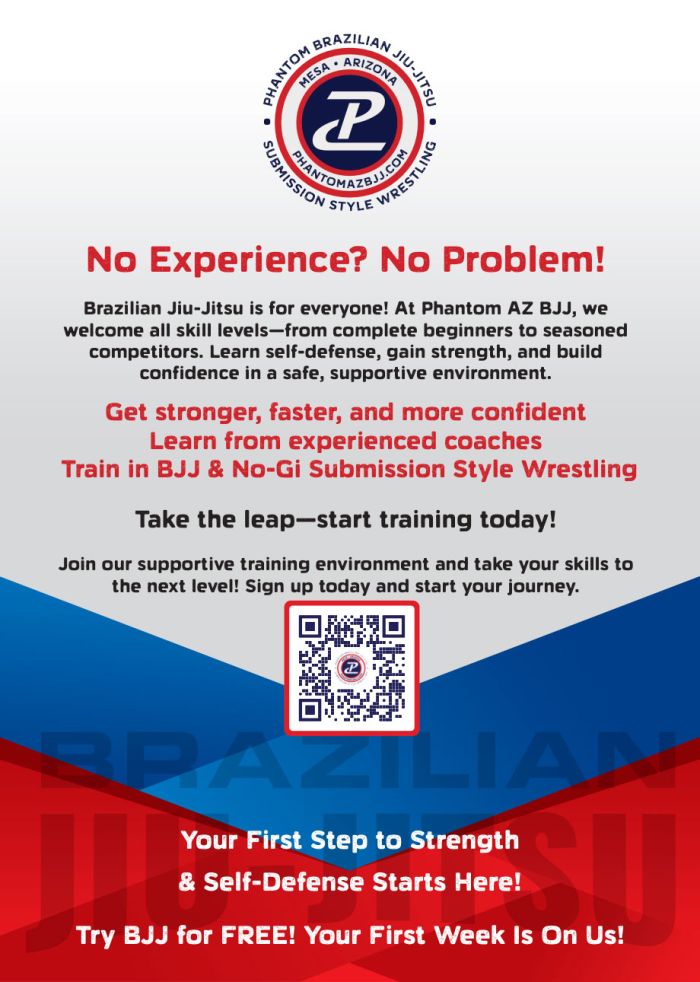 1️⃣ Grand Opening – 10% Off: A dynamic ad showcasing the energy and welcoming environment of Phantom BJJ AZ, encouraging new students to take advantage of the limited-time 10% discount.