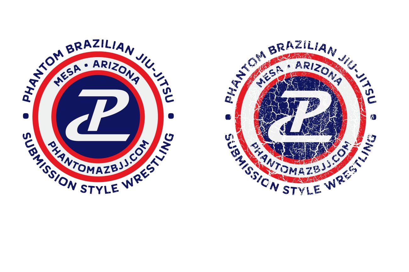 The updated Phantom Brazilian Jiu-Jitsu logos feature a bold, modern design that reflects the academy’s strength, tradition, and competitive spirit. Both versions highlight the signature “P” emblem centered within a red, white, and blue circular badge. The clean version represents professionalism and clarity, while the distressed version adds a rugged, battle-tested feel—symbolizing the grit, resilience, and discipline of BJJ training. Together, the refreshed logos capture the identity of Phantom BJJ as a premier academy in Mesa, Arizona, dedicated to excellence in Brazilian Jiu-Jitsu and submission-style wrestling.